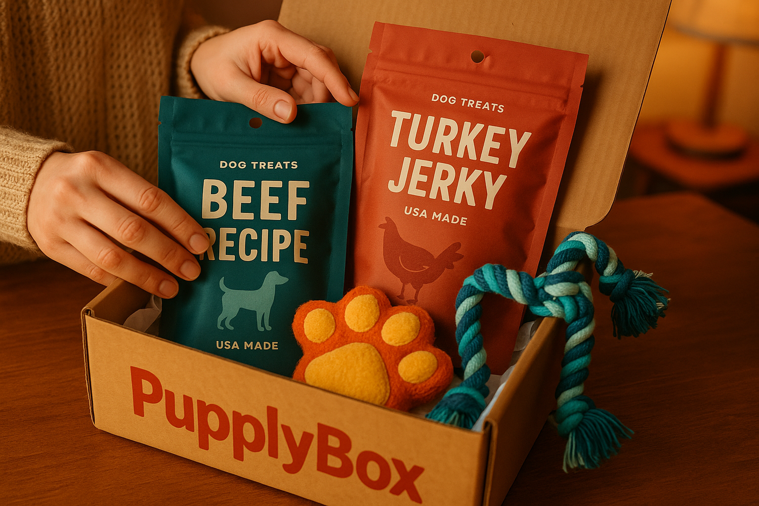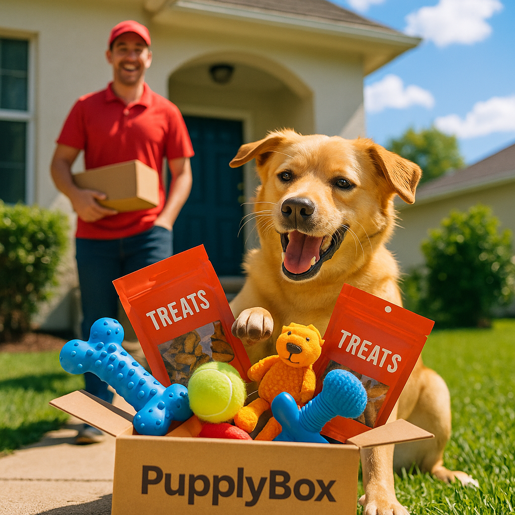 Welcome to PupplyBox—your dog’s monthly dose of joy! Each box comes with 2 USA-made treats and 2 premium toys, delivered right to your door. Here’s how it works in 3 simple steps.